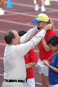 校長先生の時間が空いていそうな時を見つけて挨拶する。校長先生は忙しいのだ。とにかく、6人ぐらいの組で徒競走をするのだが、一組終わるごとに一位から三位までの生徒を表彰台に上らせて、メダルを首にかけてあげるのだから。各競技毎にこの調子だから、結果として、運動能力の優れた子は、スポーツデーの終わりにはジャラジャラとメダルを持って帰ることになる。