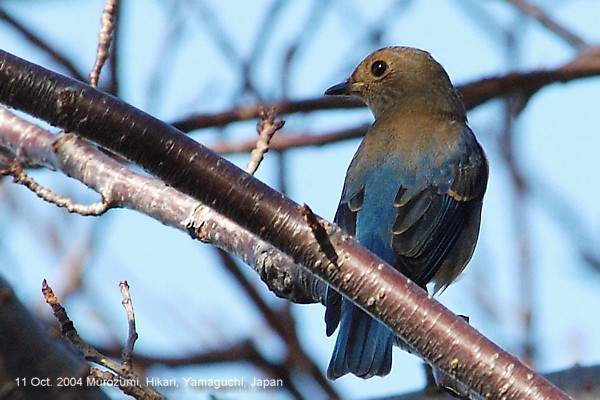 Blue-and-White Flycatcher スズメ目ヒタキ科オオルリ Cyanoptila cyanomelana(16cm) [2004.10.16]