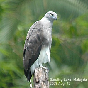 [その他コメント] マレーシア、ペラ州北部のバンディン島(テマンゴール・ダムを誤ってバンディン湖と呼ぶことも多い)からボートに乗ってオラン・アスリ(マレー語で原住民の意)の村を訪ねた際見かけた綺麗なワシ。山深い地域なので色々な鳥を見かけられるのではないかと期待していたが、実際には、このワシを含めて数種類しか見ることができず、期待はずれであった。