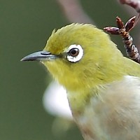 [外観] 雌雄同色。上面は黄緑色。腹は白っぽく、両脇がやや茶色っぽい。名前の由来である白いアイリングが特徴的。小柄で一見可愛らしげであるが、良く見ると、結構怖い目つきをしている。