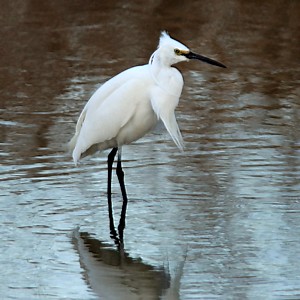 撮影メモ: 留鳥。頭や胸の飾り羽が目立つ小型のシラサギ。水の中で足をゆすって小魚を追い出して捕食する姿が面白い。