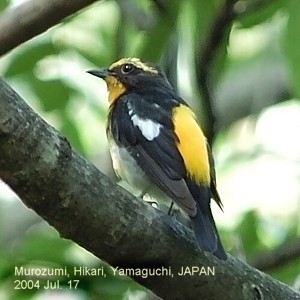 Narcissus Flycatcher スズメ目ヒタキ科キビタキ Ficedula narcissina(14cm) [2004.07.23]