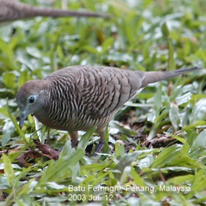 Peaceful Dove (Zebra Dove) ハト目ハト科チョウショウバト Geopelia striata (21cm) [2004.07.17]